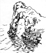 Sea Lion Rockby Matt Bergstrom If you turn off the Terry Fox Courage Highway at Pass Lake, Ontario, at the Pass Lake Truck Plaza, and head down the winding two-lane road through Sleeping Giant Provincial Park, fourty-some kilometers down the Sibley Peninsula, at the very end, the road becomes dirt and you have reached Silver Islet, Ontario. The dirt lot in front of an square wooden building overlooked a small harbor protected by an island (Silver Islet?) from Lake Superiors frequent storms. A sign on the building proclaimed: STORE. Inside the store we found quaint wooden counters and an old scale in the corner for weighing produce. It appeared to have not changed since the old days, when the town was presumably a silver mining town. But it was not quite the same. The store offered some small food items and tasteful souvenirs, but nothing to really live on. Silver Islet was no longer a mining town but a village of cabin retreats. Someone had drawn placemats of the older and more unique houses of the town. On the wall, a series showed all the landmarks of Silver Islet. The woman behind the counter told us how to find one of the places, the Sea Lion. Before a storm a couple years ago, it had a rock on top that looked more like a sea lion. We were to drive up the road again and take a left after the second right, at Hal & Arlenes driveway. The woman said it would be alright if we parked in their driveway, as long as we didnt block it. Then a sign would direct us to a path. We walked through a lichen and moss pine forest, up over a rock outcrop and there was the Sea Lion. It was a tall fin of rock jutting out into Lake Superior, with a hole where waves could wash through it. From twenty-five feet above, our cliff looked down onto a small cove of crystal cold water between us and the Sea Lion. Some pattern of waves reflecting from the fin and undercut cliffs created a foamy area out in the water that never washed away. The fog that had been dogging us for days waited just offshore and eventually crept in front of Sleeping Giant mountain. We continued along the cliff to just above the Sea Lion. It was only three or four feet wide, clung with dwarf aspen and cedar trees. Somehow, this fragile rock, no longer the shape of anything recognizable, at the end of a path from a town that was no longer a town, at the end of a dead end road, had captured enough of the spirit of this place to keep its name in the hearts of the people who lived here. |