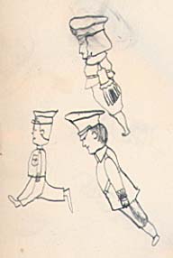 And the more he thought about these sunny memories the less he thought about boring old Longfellow and this boring old text book and this boring classroom. His mind wandered off to the War in Europe and the heroes and legends of the newspapers. Somehow these daydreams seemed more real and more interesting than the musty stories and fairy tales from ages ago.And the boy drew pictures in the margins of his book, pictures of the faraway lands where his mind wandered.