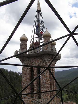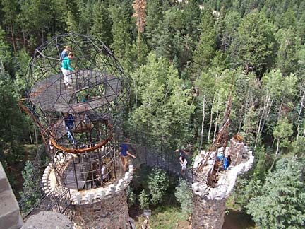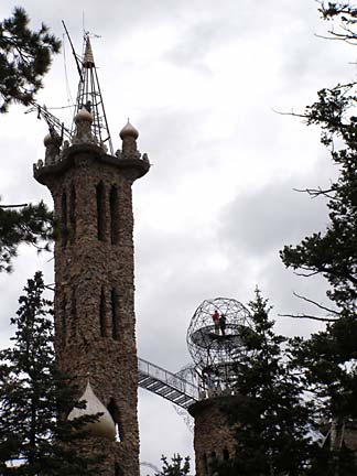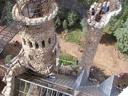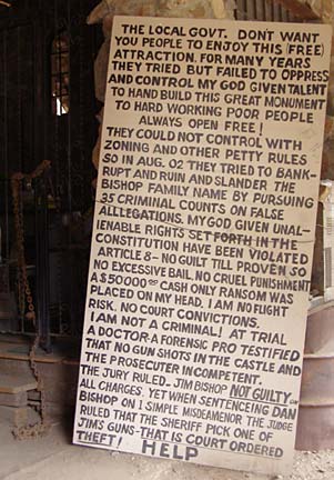 Over the years, Jim Bishop has struggled often with local government officials who have held him back from his lofty plans. The site is peppered with hand-lettered signs arguing his point-of-view, not so much to win the visitor to his side but simply as a record of injustices beaten back by truth. On a warm day the castle is crawling with tourists enjoying a kind of libertarian freedom zone of open sky and clear air, free from safety railings and building inspectors. Bishop Castle embodies the freedom of the westerner to realize his dreams, unhobbled by the fences of small-minded rules and conventions.
