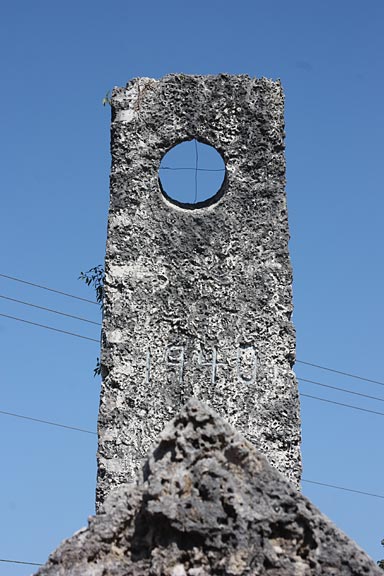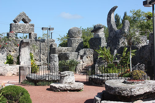 In about 1936, Leedskalnin decided to buy a larger plot of land 10 miles away in Homestead, Florida. Over the next three years he transported all the stone sculptures to the new Rock Gate Park. Here he continued quarrying coral rock to build a tall wall around his new garden. He built a stone sign and donation box, inscribed mottoes for visitors over the front gate of the garden, and for a back gate built his most impressive creation yet: a three-ton stone balanced perfectly on a hidden truck axle pivot which could be turned by the touch of a finger.
