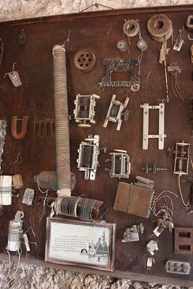 In later years, Leedskalnin spent much time at the library in Homestead, researching electricityand magnetism. In the first floor of the tower he set up a little laboratory for experiments with crystal radios and strung copper wires along the walls to pick up electromagnetic signals. He came to believe that magnetism was the force that united all matter, and published more pamphlets describing his experiments and conclusions which he sold to visitors.
