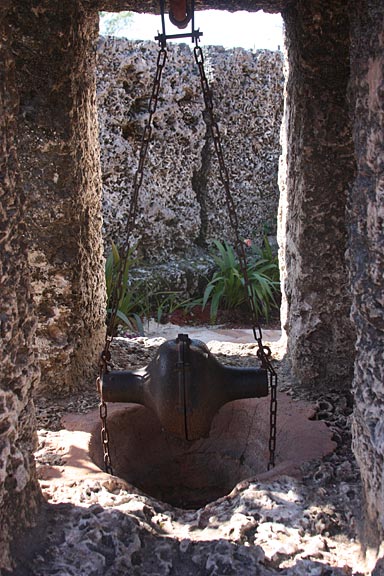 The final project of the garden was a two-story stone tower. Leedskalnin was finally able to leave his wooden shack and make the castle his home. A tiny upstairs room provided space for a hammock, a food storage box hanging from the ceiling to protect it from ants, and a little kerosene stove and table.