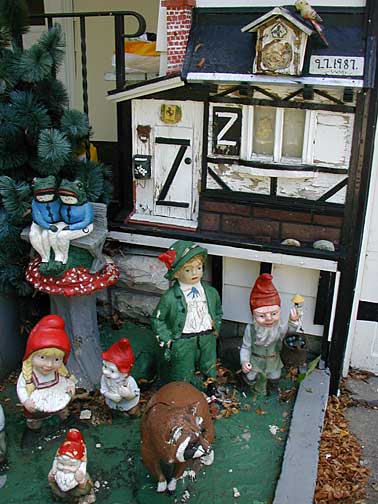Thekla and Werner Muense created this yard show to brighten their home a number of years ago. They have both now passed away, but hopefully the current residents will care for the little critters and keep the garden well.