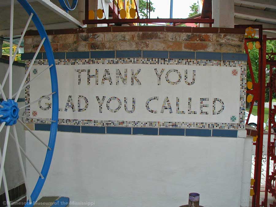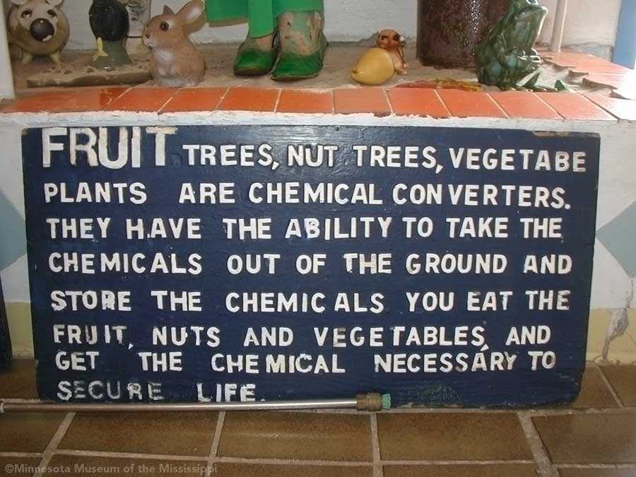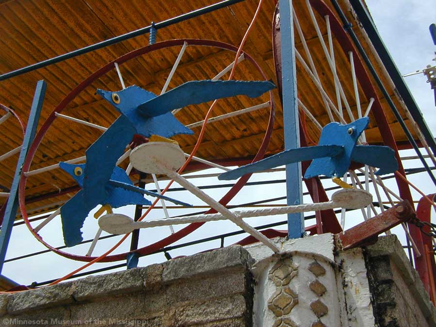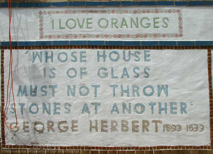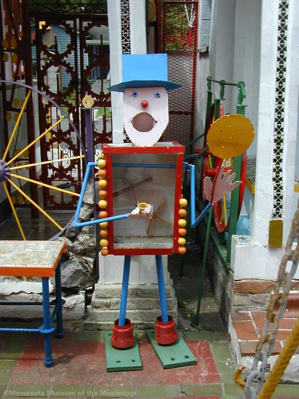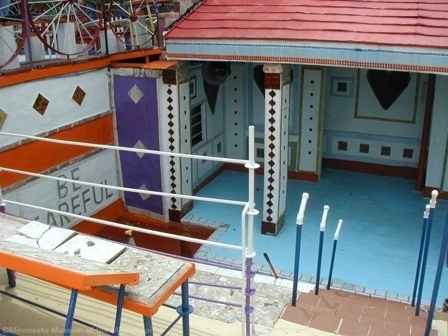 The Orange Show was built by Jeff McKissack as a shrine to his favorite fruit, the orange. While working as a letter carrier he was inspired to bring home materials scavenged along his route and began building in 1956. On the two lots next to his house he worked for 25 years to build displays about oranges, a small theater, stairways, tiled walls and balconies in a sort of labyrinth in bright colors. He opened the site to the public in 1979, but less than a year later died from complications of a stroke.