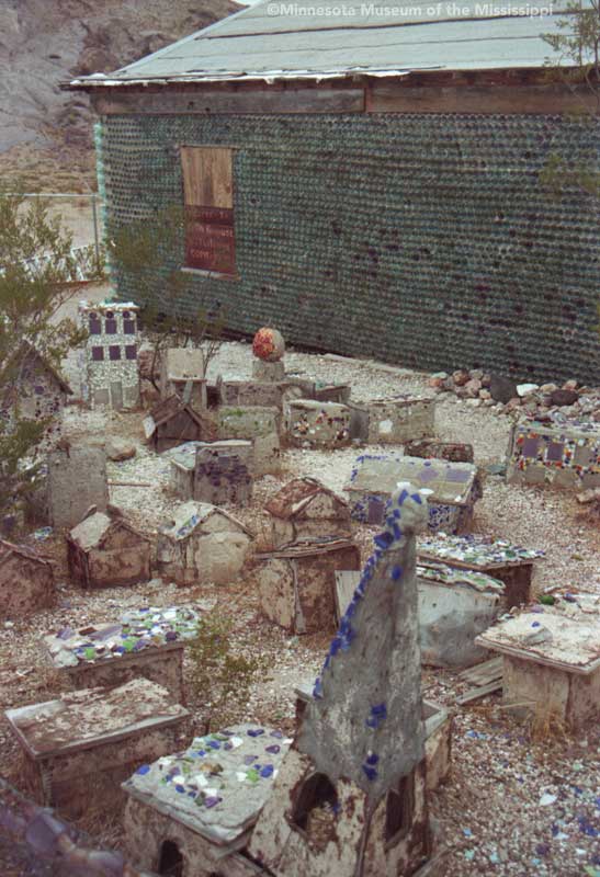 In the 1920s, auto tourists discovered the picturesque ghost town and the unusual bottle house became a quirky landmark for explorers to seek out. In 1925 it was partly restored by Paramount Pictures for a western film. In the 1950s it became the model for the well-known bottle house at Knotts Berry Farm. Earthquakes and the desert sun have done much damage to the bottles, but it was repaired again and given a new roof for its centenary in 2005.