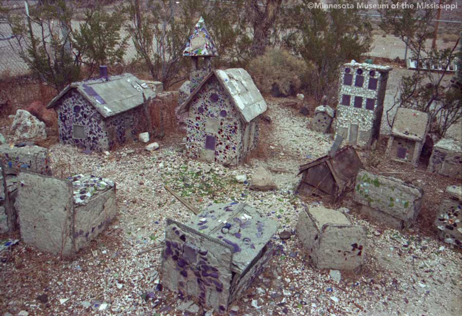 Several caretakers have lived in the house over the years. Tommy Thompson, who was caretaker from 1954 to 1969, added a little rock garden of toy houses decorated with concrete embedded with toys, costume jewelry and other little trinkets.