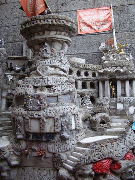 Adjusting to life in America, Silvio became frustrated with the shallow materialism he saw around him. Wishing to educate his customers about the richness of culture and history, he sculpted handmade concrete monuments to Christopher Columbus, Julius Caesar and highlights of Roman architecture. Over the years he has constructed many other memorials to Americans he admires, such as Martin Luther King, George Washington, the Detroit Red Wings, Rosa Parks, President Bush and the Three Stooges, as well as tributes to his family and recreations of childhood memories growing up in rural Italy.