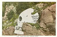 Soapy Smith's Skull A 25-foot flat rock "helped out" with a bit of paint in 1926. Since the 1920s visiting captains have painted their ships' names on this cliff beside the harbor. MNM#01-01141 |