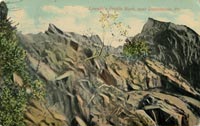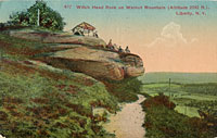 Witch Head Rock Walnut Mountain Hotel once stood on summit to the left of postcard image. Since the 1960s the land has been a public park. Recently a local mountain bike club has restored the trail to Witch Head Rock. MNM#01-01204 |