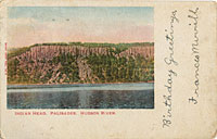 Indian Head Rock Several rock faces have existed at various times on these cliffs, including opposing Indian Head and George Washington Rocks, and even a brief appearance of a Hitler Face Rock. See article on njpalisades.org. MNM#01-01213 |