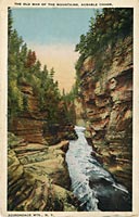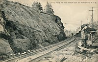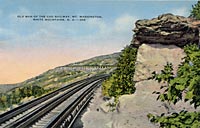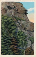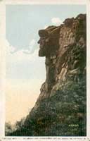 Old Man of the Mountains A tiny profile overlooking the river is visible at the center of the postcard image MNM#01-01237 |
