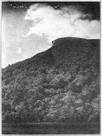 Nature in a mood of playfulness or possibly in reverential mien, formed The Great Stone Face from large rocks so grouped together as to produce the perfect profile of a majestic face, when seen from the proper view point near the lake below. Seemingly a Titan had chiseled his gigantic likeness there in the ledgy mountain side. The massive forehead; the long nose; the parted lips, mute, but capable of thunder accents thruout the valley, were awe inspiring indeed. To one who approached too near the mighty Visage, nought was seen but a chaotic ruin of ponderous rocks. Withdrawing again the face reappeared, divinely intact, until glorified by cloud and sun. The Great Stone Face seemed truly alive.