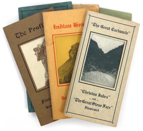The Reverend Guy Roberts, a champion of efforts to preserve New Hampshire's Profile Rock, published a set of souvenir booklets in 1924 which contain this abridged retelling of Nathaniel Hawthorne's short story "The Great Stone Face," first published in 1850. Rev. Roberts felt the need to shorten the tale for the limited free time of busy motorists and edited out many of Hawthorne's lengthy descriptions. His refashioned story is a charming retelling, complete with the simplified spelling conventions of the 1920s: