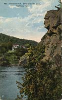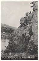 Across river from Taylors Falls State Park (MN). The face is located just downstream of the highway bridge and best visible from the diving cliffs about 1000 ft south of the bridge.