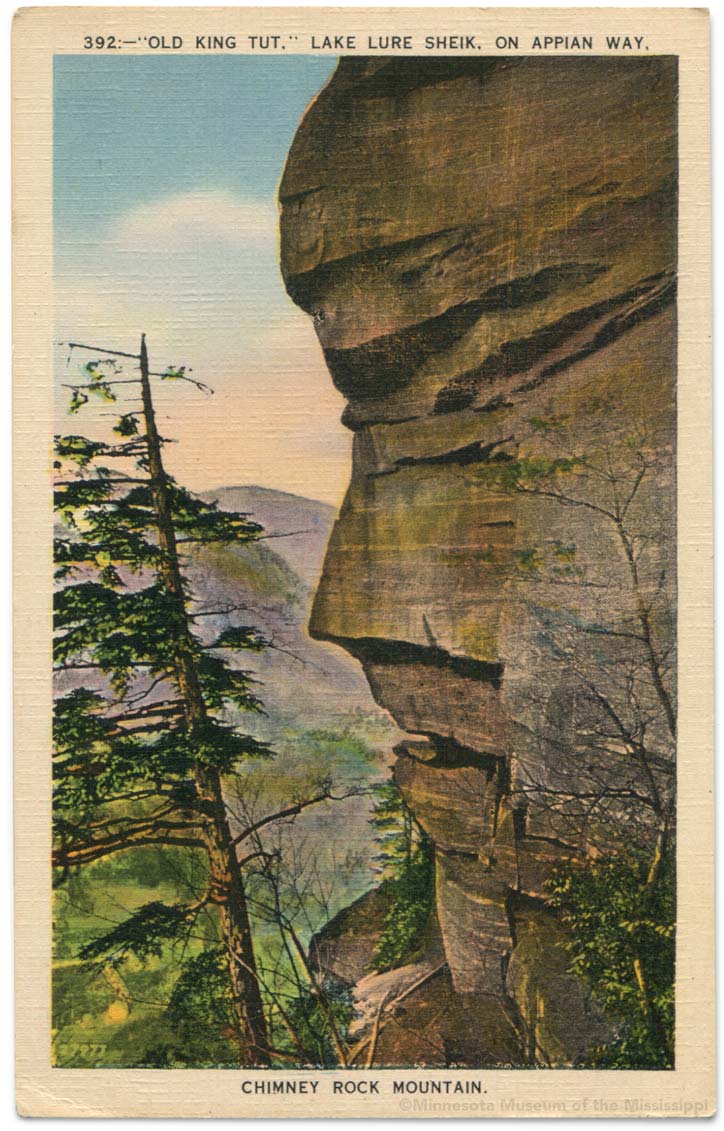 392:- "Old King Tut," Lake Lure Sheik, On Appian Way. Chimney Rock Mountain.