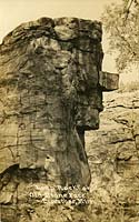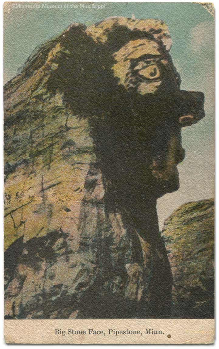 Located in Pipestone National Monument. A strategically positioned window in a trailside sign points out this face.