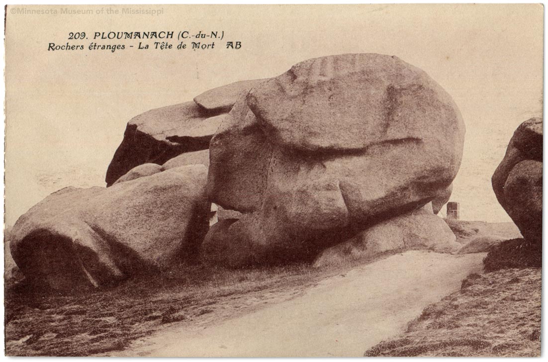 One of many unusual rock formations on the Brittany's "Pink Granite Coast". Skull-like rock formation in unknown location among many similar rounded rock outcrops near Ploumanach.