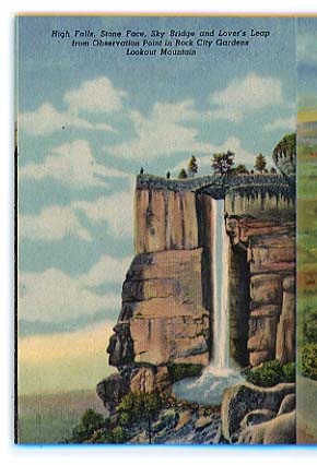 High Falls, Stone Face, Sky Bridge and Lover's Leap from Observation Point in Rock City Gardens