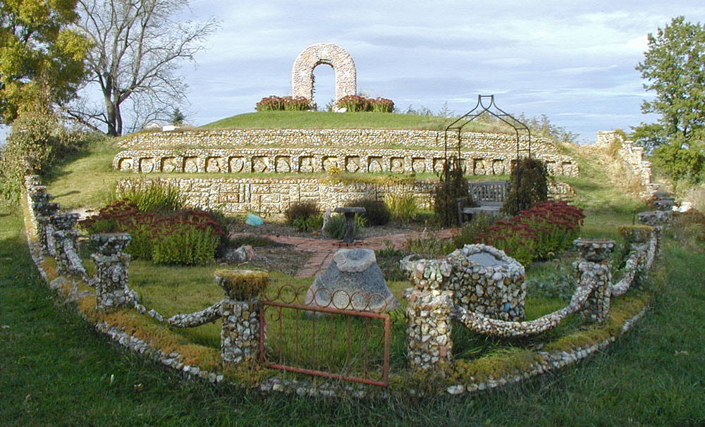 Notzke added to his garden gradually over the years, culminating in the last construction, a massive gateway arch over the driveway built as a monument to his wife Ethel who passed away in 1963.