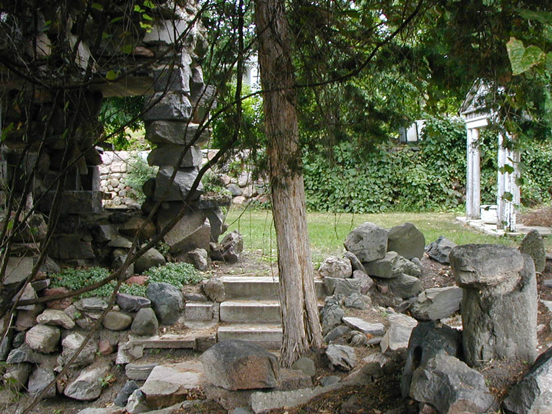 The temple appears in early photographs of the garden, before many of the rock structures were built. Wippich apparently intended this to be a performance space for musicians and actors.