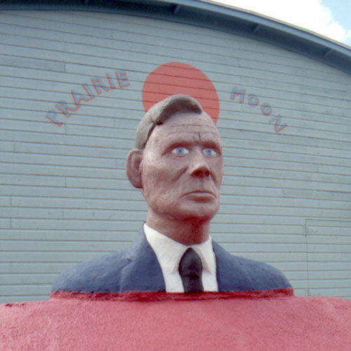 Herman Rusch started working on the Prairie Moon Garden and Museum in 1952, when he retired from 40 years of farming. The museum came first, when Rusch rented an old dance hall as a place to display his collections of unusual rock formations, natural wood oddities, taxidermy, curiosities and antique tools. After a few years he decided that the outside of the museum needed improvement, so he built a concrete flower planter. With this introduction to concrete construction, Rusch began populating his property with miniature buildings, decorative fences, towers and birdhouses built of concrete, rock and seashells.