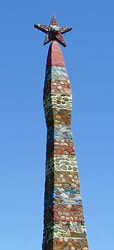 The northeast corner of the garden features several tall sculptures. The elegant "Sunspire" features a mirror-encrusted star high atop an obelisk-like structure.