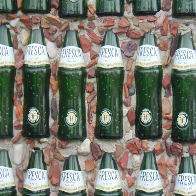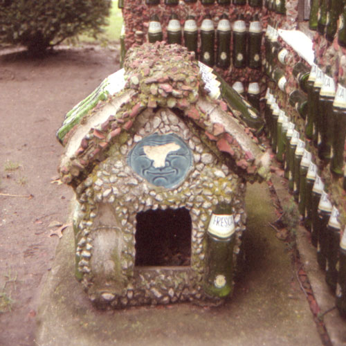 Near the corner by the entrance there was an even smaller bottle dog house with Fresca bottles embedded in the roof and walls.