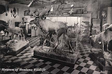 Sculptor Bob Scriver maintains this elegant and well-made museum as an adjunct to his extensive wildlife sculpture studio. It is a sanctuary of quiet, soft light, small spaces and fine taxidermy, a relief from the stark sunlight of the open plains and the crazed traffic parade on Hiway 2 through Browning. There are mounted representatives of all the mammals and fish species found in Montana, each labelled carefully and clearly, without much clutter of natural setting.