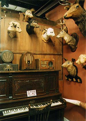 This county museum features a small collection of mounted game heads mixed with the usual county museum bric-a-brac, such as wagons, old bottles, and wedding gowns from local residents. Most notable are the series of two-headed calves seen above.